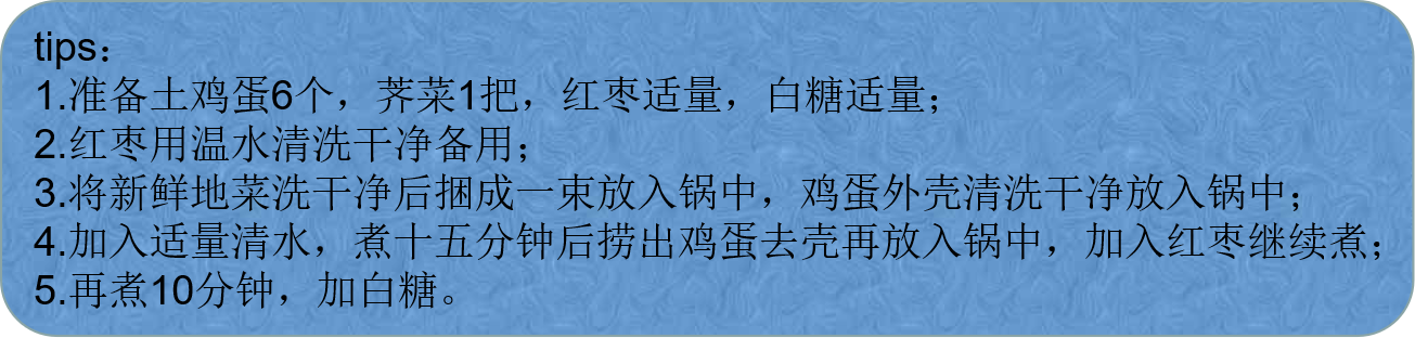 最后给大家分享一个“三月三”的传统习俗—-吃地菜煮鸡蛋,地菜即荠菜,民间不仅有“阳春三月三,荠菜当灵丹”的谚语,还流传着“春食荠菜赛仙丹”的说法。“农历三月初三处于季节交换、阴气没有褪尽的时节,人很容易患病,古人采用药草洗涤、泡浴的方法扶正驱邪,还会采摘野菜作为药膳食用,用来养生防病。荠菜一味药食同源的传统佳蔬。地菜不仅营养丰富,而且药用价值也很高。中医认为,荠菜性味甘、凉,入肝、脾、肺经,有清热止血、清肝明目、利尿消肿之功效。